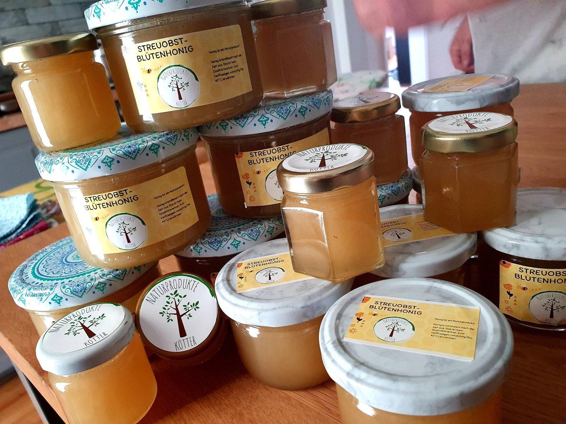 Wir verkaufen verschiedene Honigsorten! Ihr bekommt z.B. Frühtracht- oder Sommertracht-Honig bei uns und ihr könnt euch entscheiden, ob ihr lieber cremig gerührten oder klaren Honig möchtet.